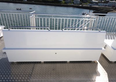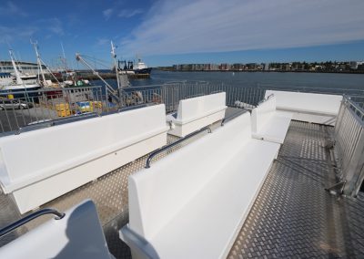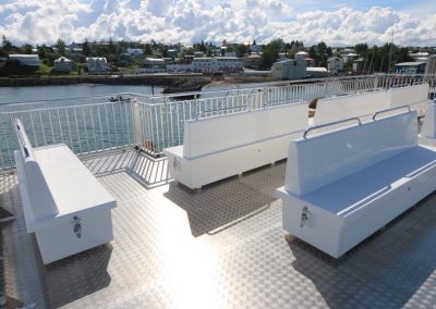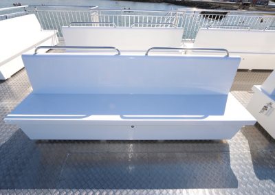 Harðgerðir útibekkir fyrir farþega með geymslu fyrir björgunarvesti.