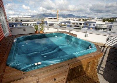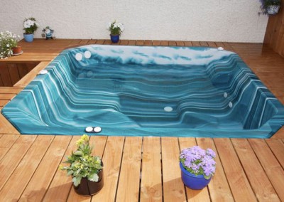Yfirborð pottanna er úr hágæða akrýl – einstaklega sterku plastefni sem er fallegt í áferð og mjög auðvelt að þrífa. Akrýlið hrindir frá sér gróðri og óhreinindum, sem gerir það fullkomið fyrir heitar laugar í íslensku veðurfari.