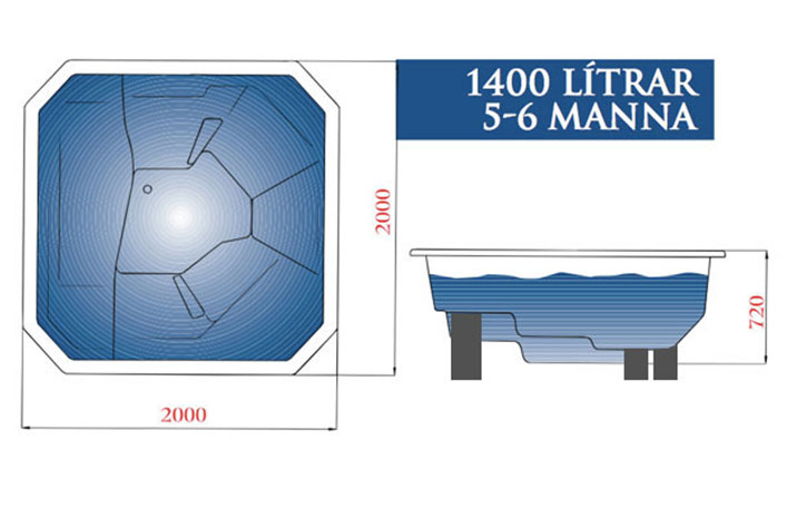 Undir yfirborðinu er sterkt lag úr trefjaplasti (fiberglass) sem gerir pottinn sjálfberandi. Því þarf ekki að smíða flókna burðargrind, og potturinn heldur lögun sinni ár eftir ár – jafnvel í miklum hita- og kuldasveiflum.