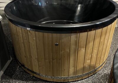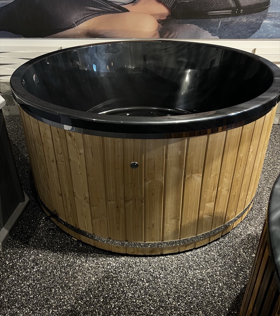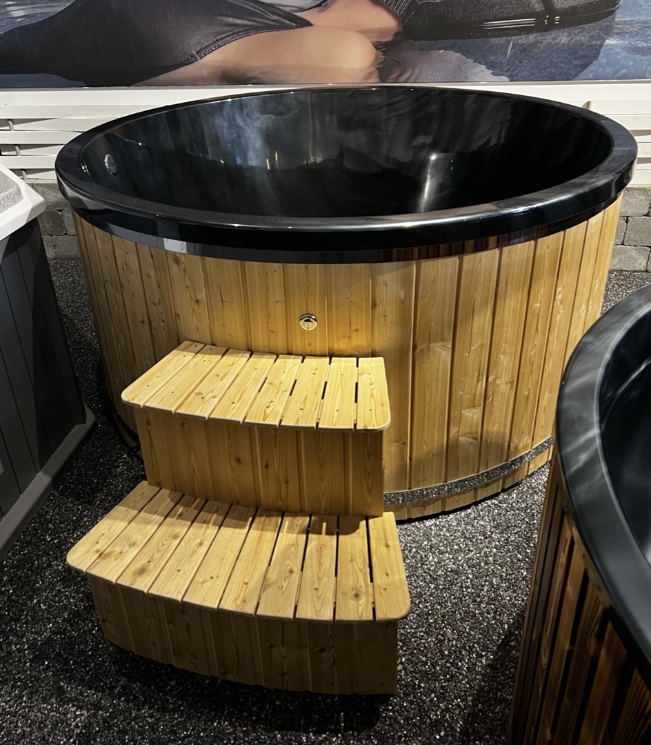 Potturinn kemur ”plug&play” – tilbúinn til notkunar – með lerkiklæðningu sem er ómeðhöndlað lerki sem má grána eða hægt að meðhöndla að vild.