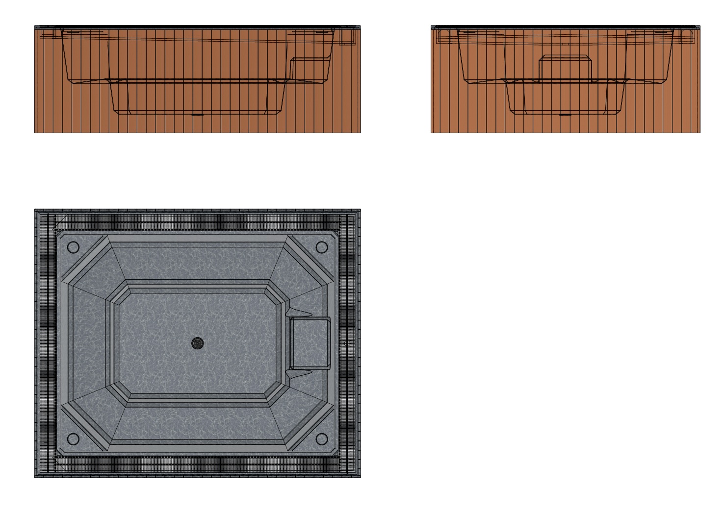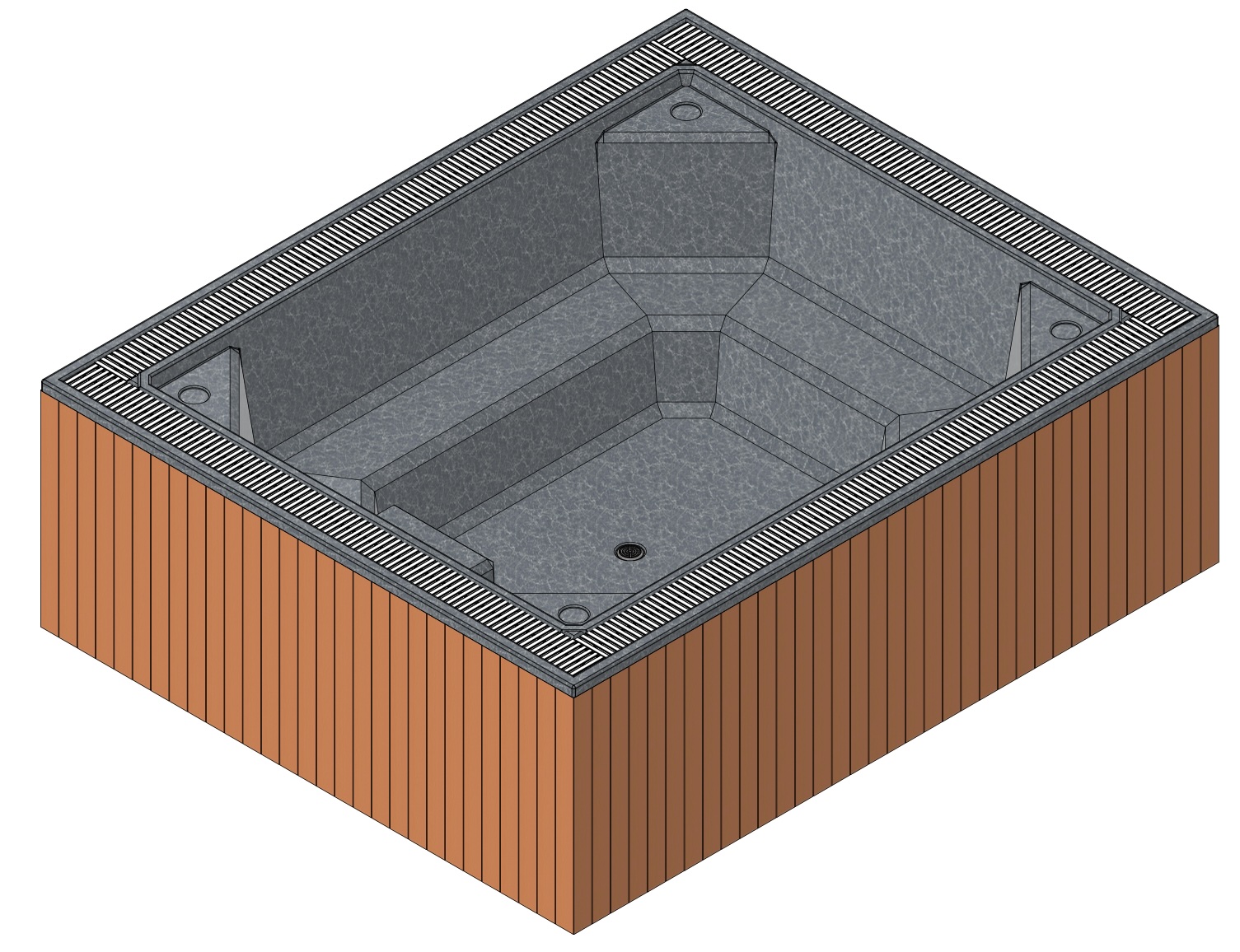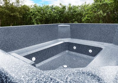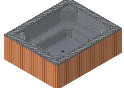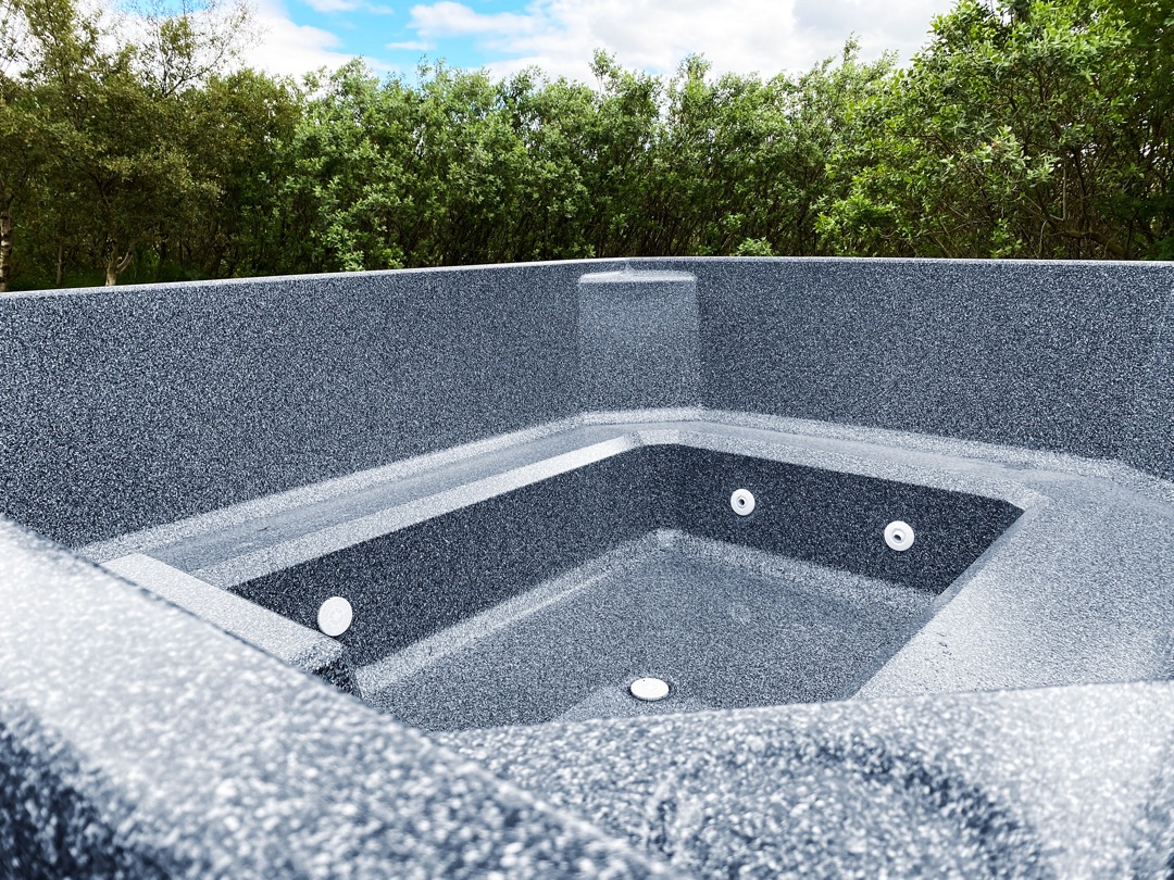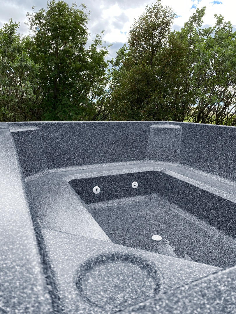 Undir yfirborðinu er sterkt lag úr trefjaplasti (fiberglass) sem gerir pottinn sjálfberandi. Því þarf ekki að smíða flókna burðargrind, og potturinn heldur lögun sinni ár eftir ár – jafnvel í miklum hita- og kuldasveiflum.