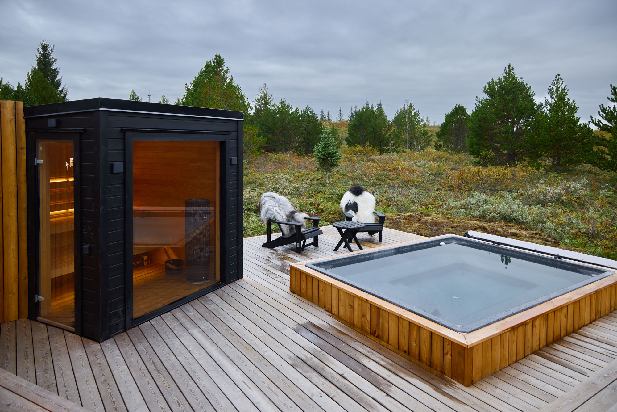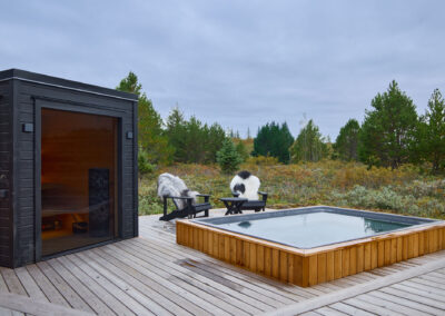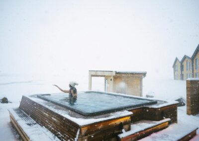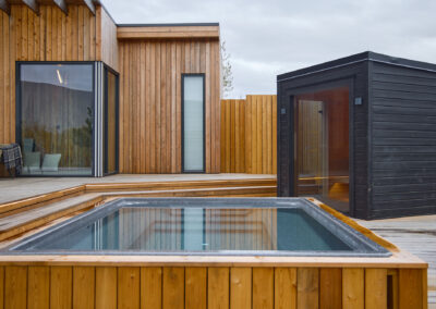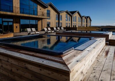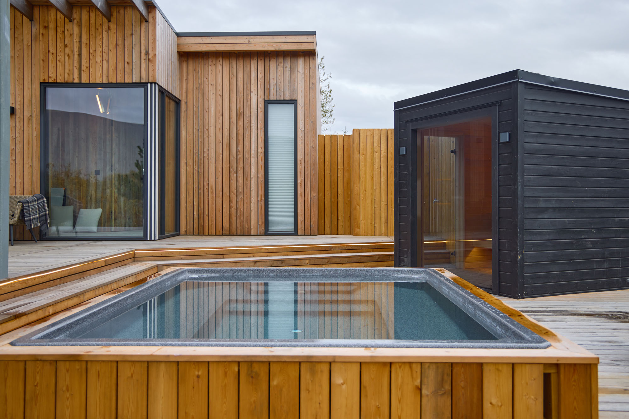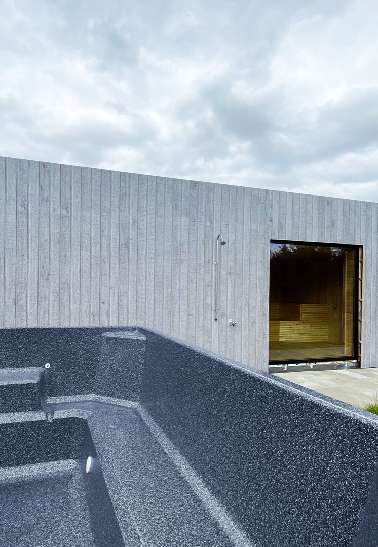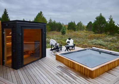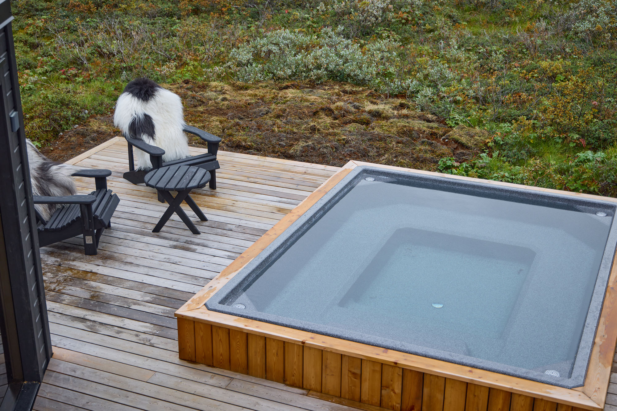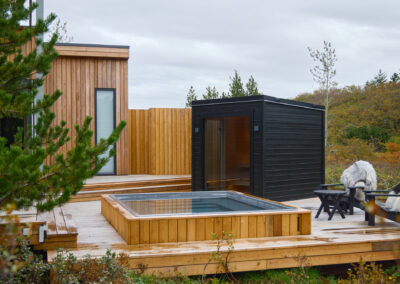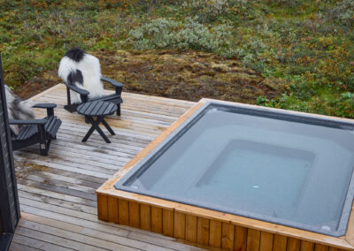 Þessi nútímalegi pottur rúmar 12-14 manns, er hæfilega djúpur og með nægu fótaplássi. Vinahópurinn gæti átt góðar stundir í þessum. Svo er skemmtilegt að stökkva út í með miklu skvapi!