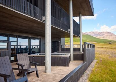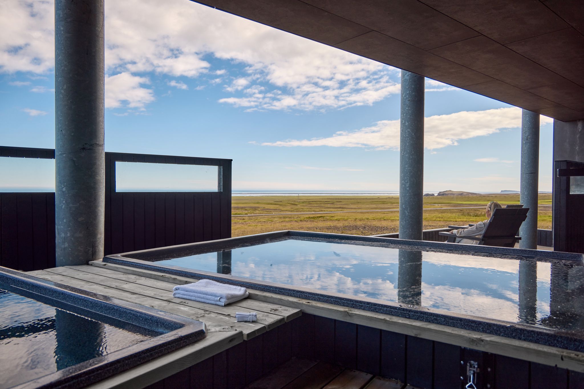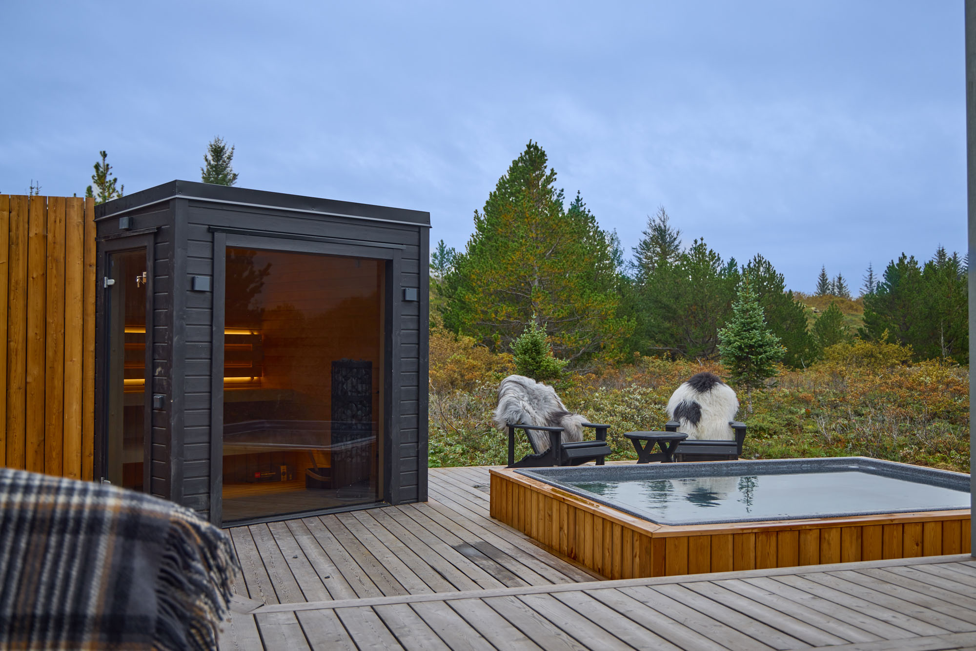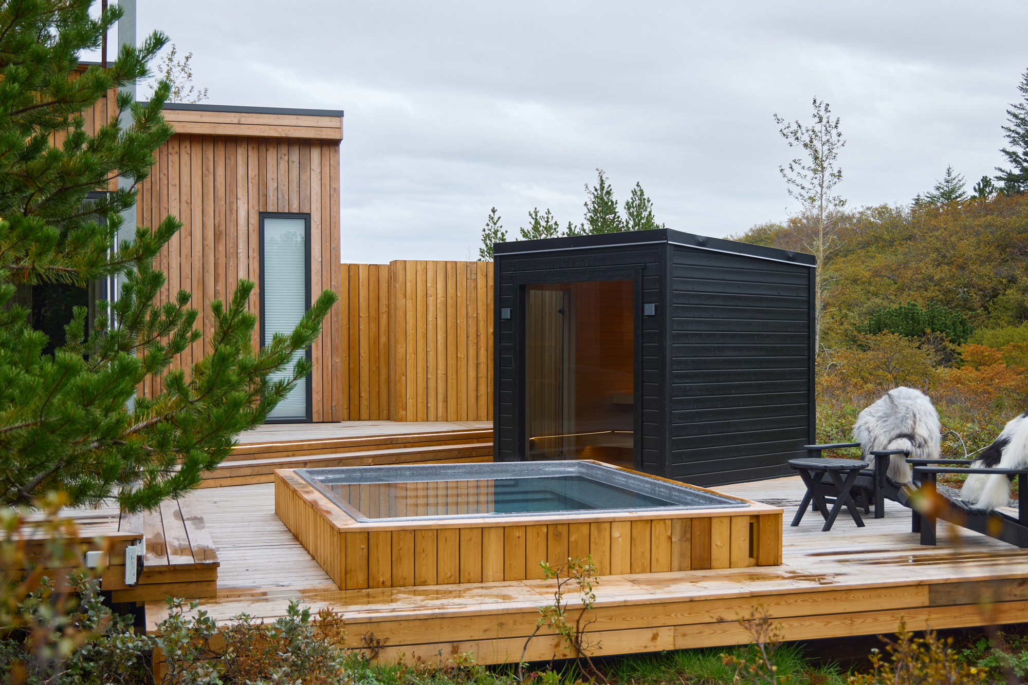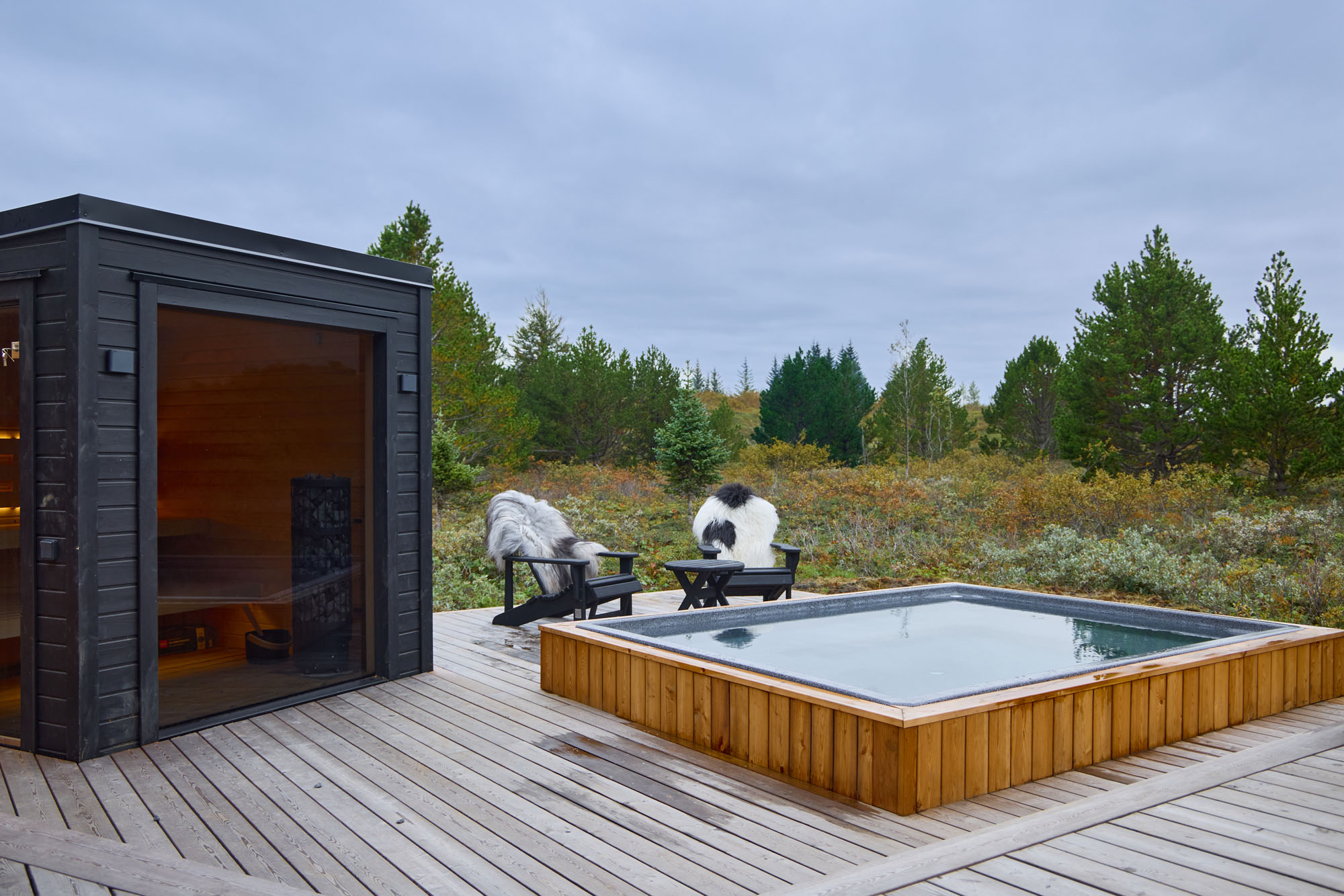 Þessi nútímalegi pottur rúmar 12-14 manns, er hæfilega djúpur og með nægu fótaplássi. Vinahópurinn gæti átt góðar stundir í þessum. Svo er skemmtilegt að stökkva út í með miklu skvapi!
