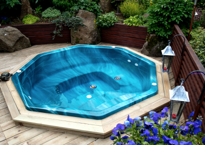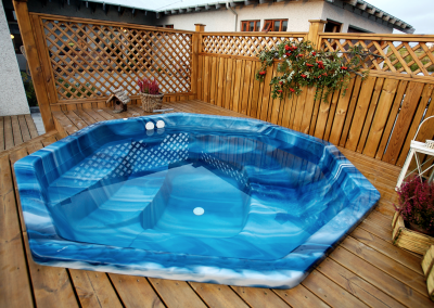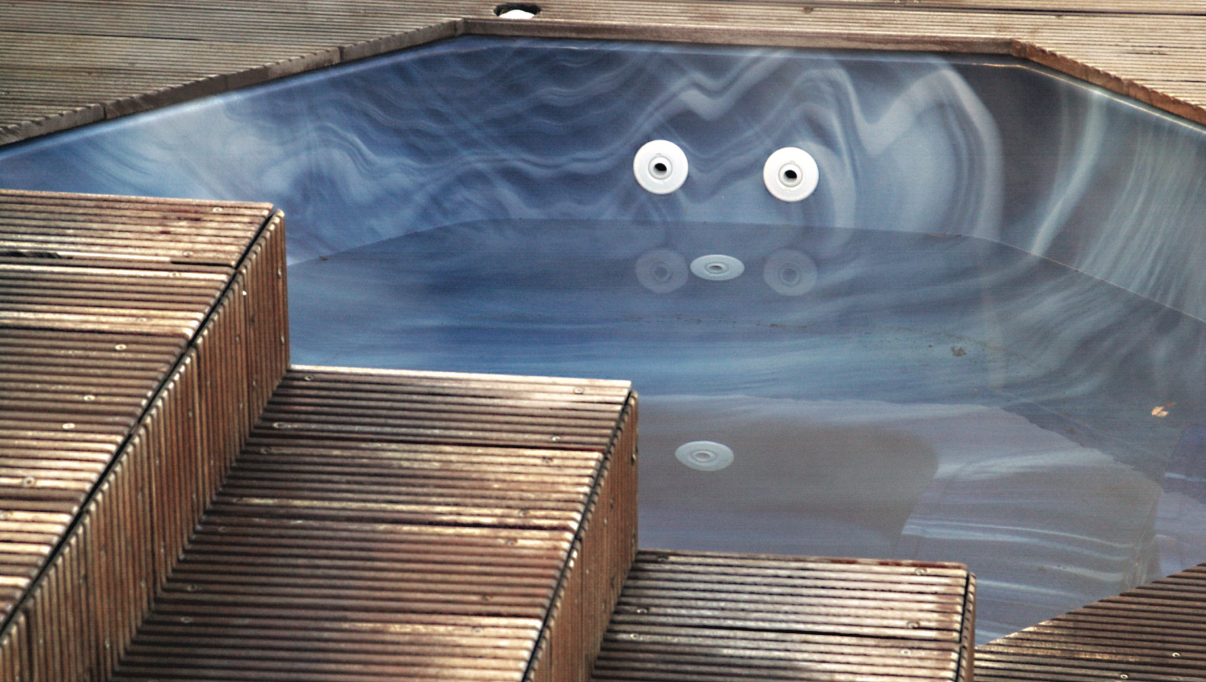 Yfirborð pottanna er úr hágæða akrýl – einstaklega sterku plastefni sem er fallegt í áferð og mjög auðvelt að þrífa. Akrýlið hrindir frá sér gróðri og óhreinindum, sem gerir það fullkomið fyrir heitar laugar í íslensku veðurfari.