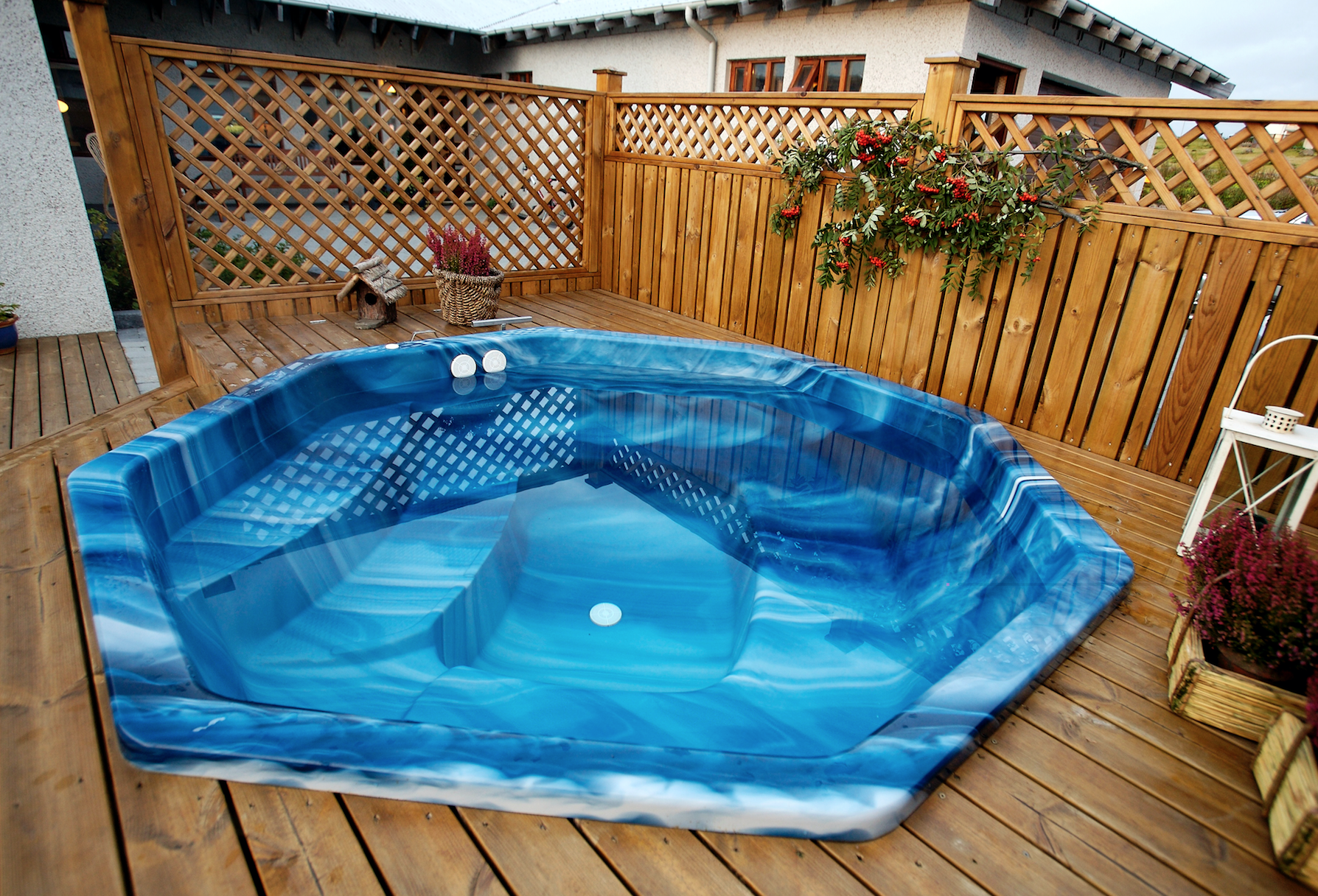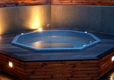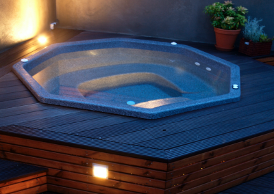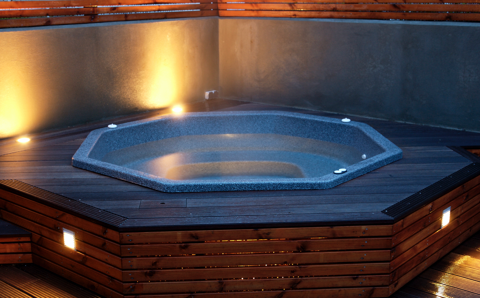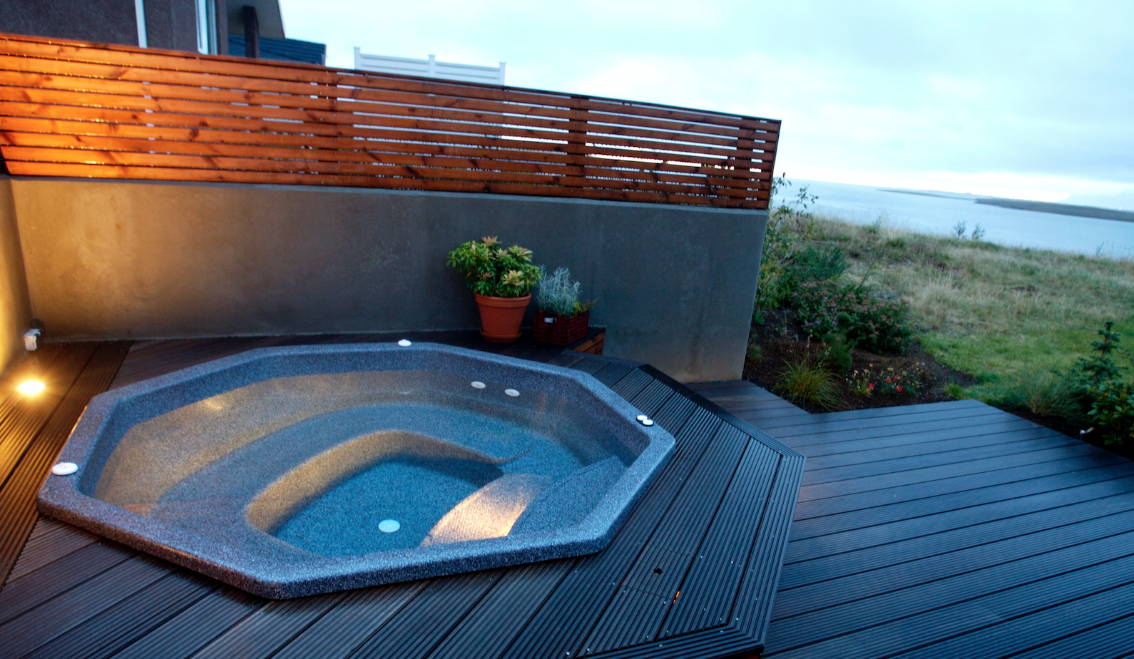 Ljós í pottinum er frábær viðbót. Það veitir fallega lýsingu þegar að farið er að rökkva. Í stað þess að vera með útiljósin kveikt er hægt að skapa notalega stemmningu þar sem ljósin eru innbyggð í pottinn.