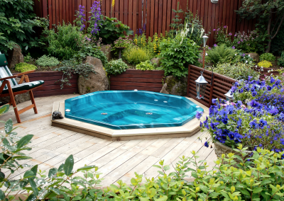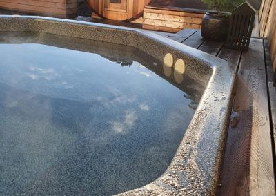 Undir yfirborðinu er sterkt lag úr trefjaplasti (fiberglass) sem gerir pottinn sjálfberandi. Því þarf ekki að smíða flókna burðargrind, og potturinn heldur lögun sinni ár eftir ár – jafnvel í miklum hita- og kuldasveiflum.