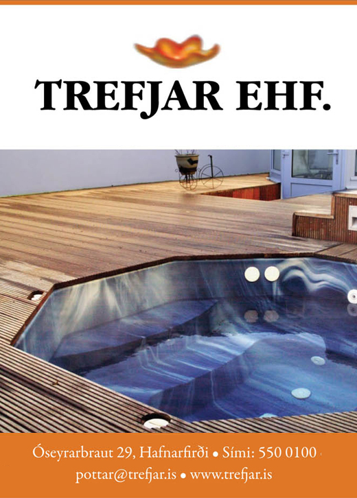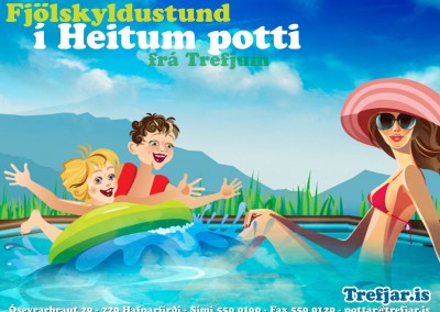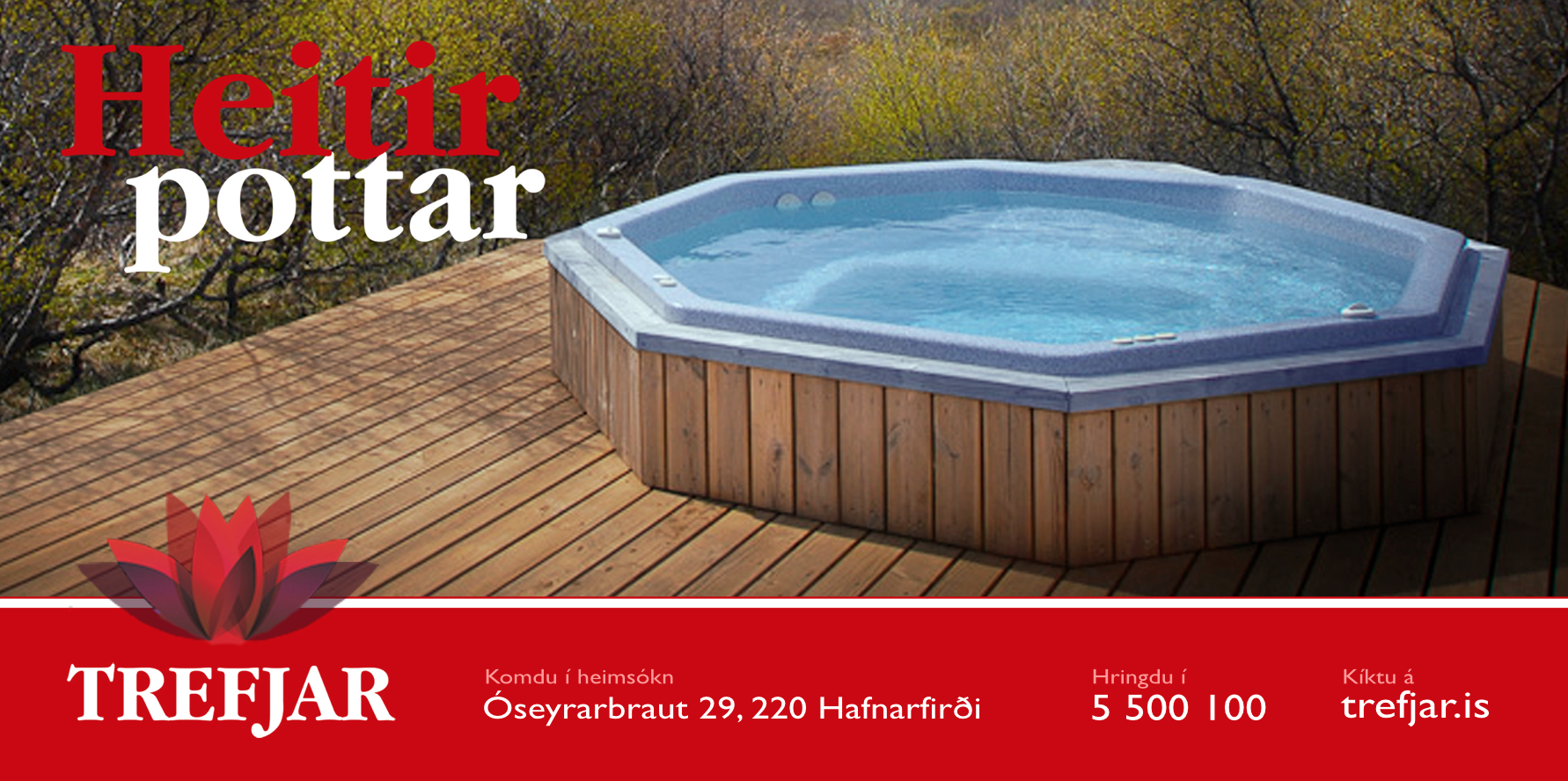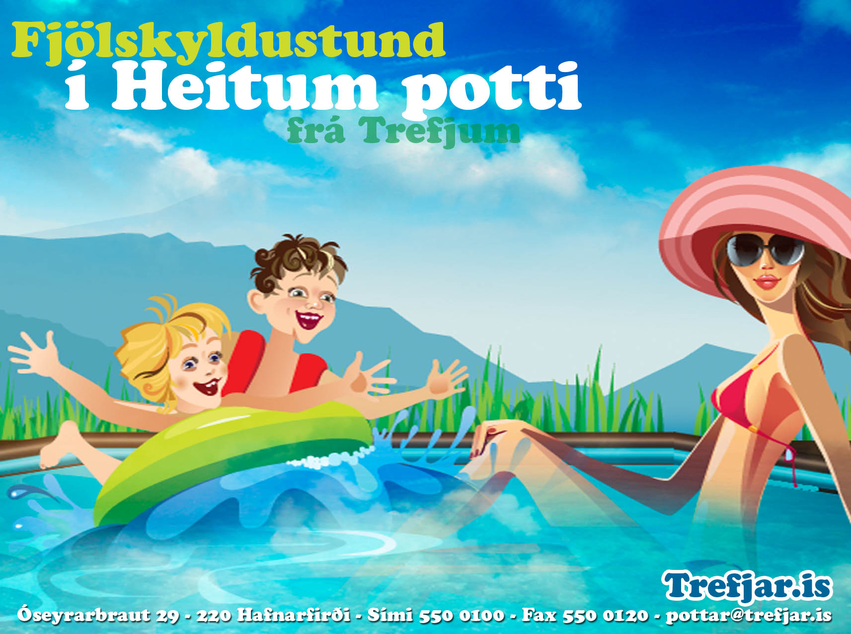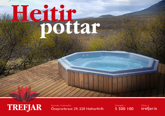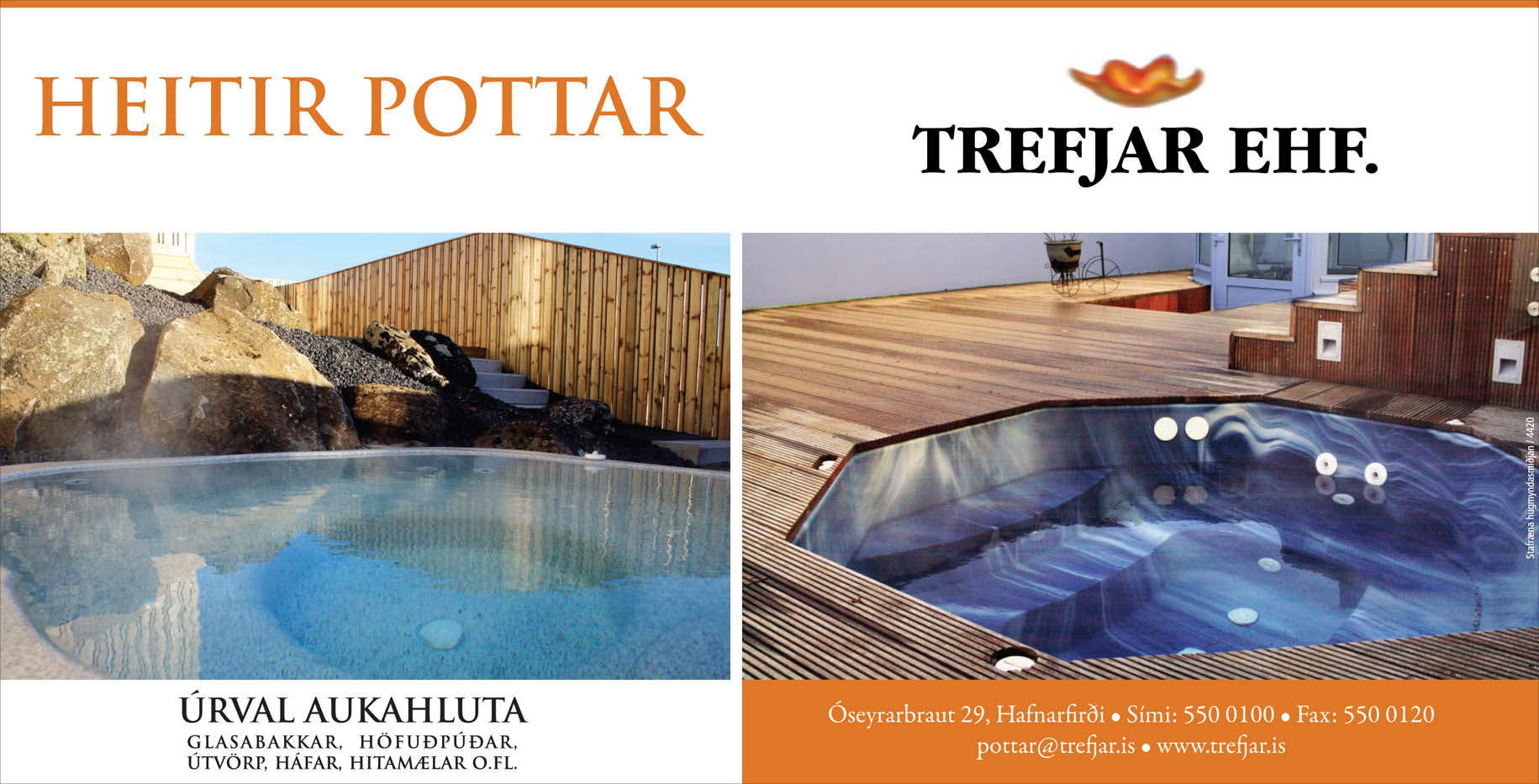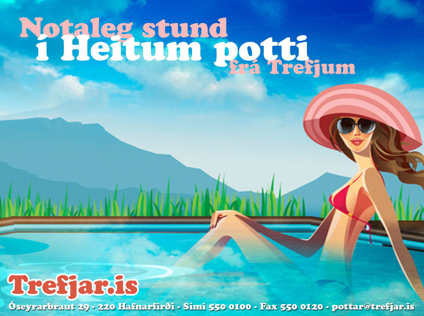2 myndir af heitum pottum, með textanum „Heitir pottar“ og „Trejfar“ og vísað á trefja.
