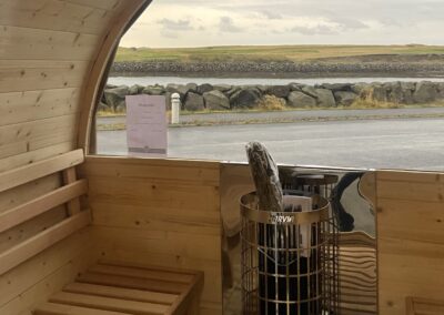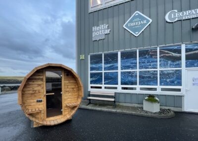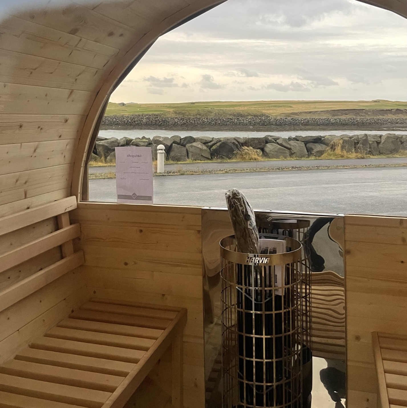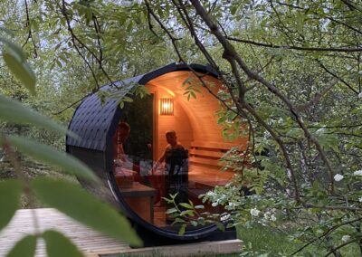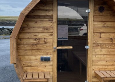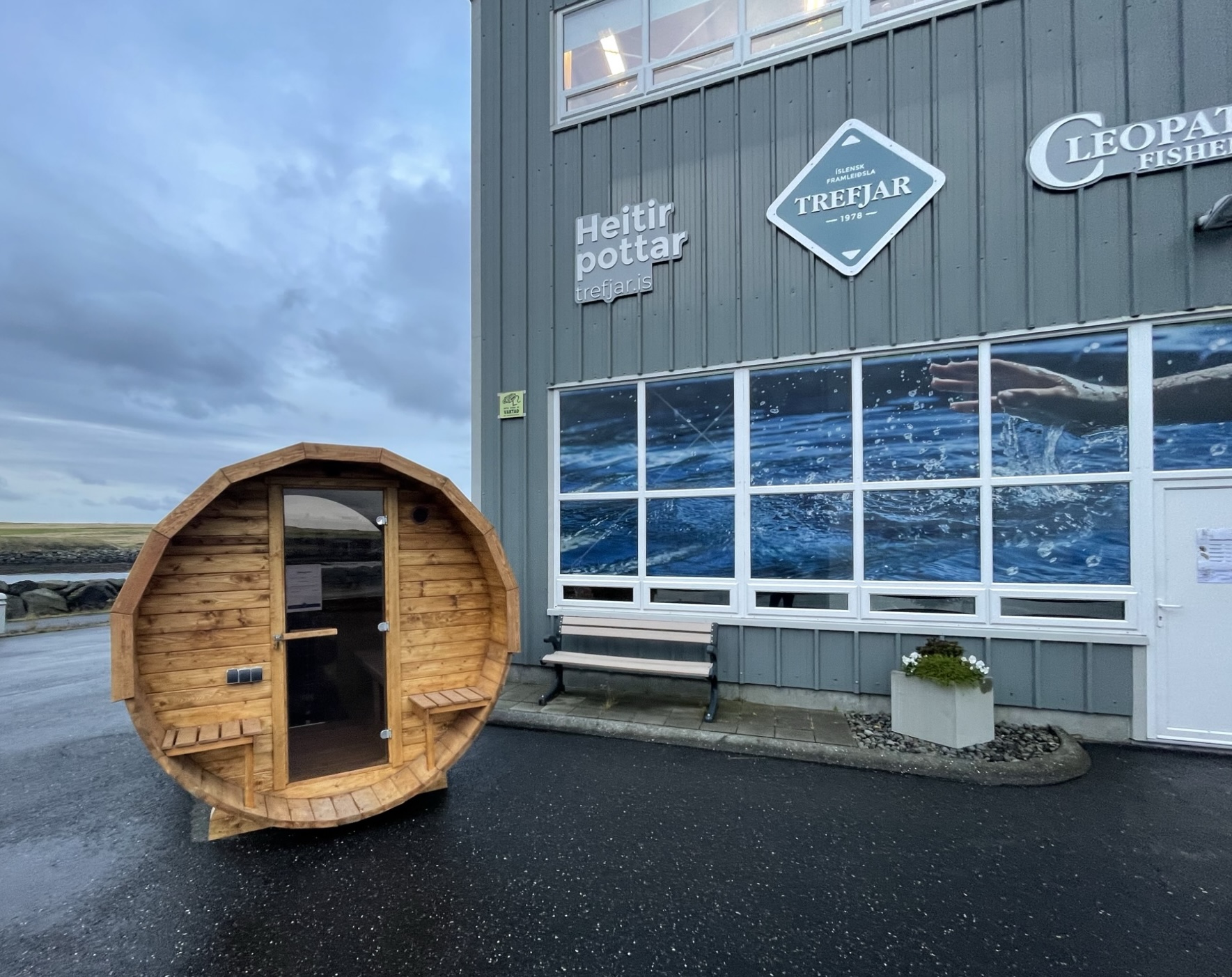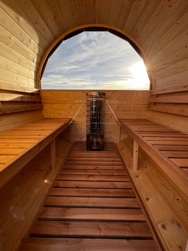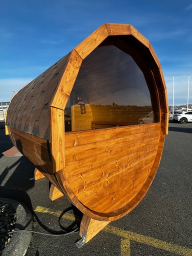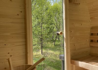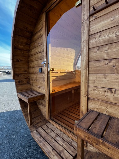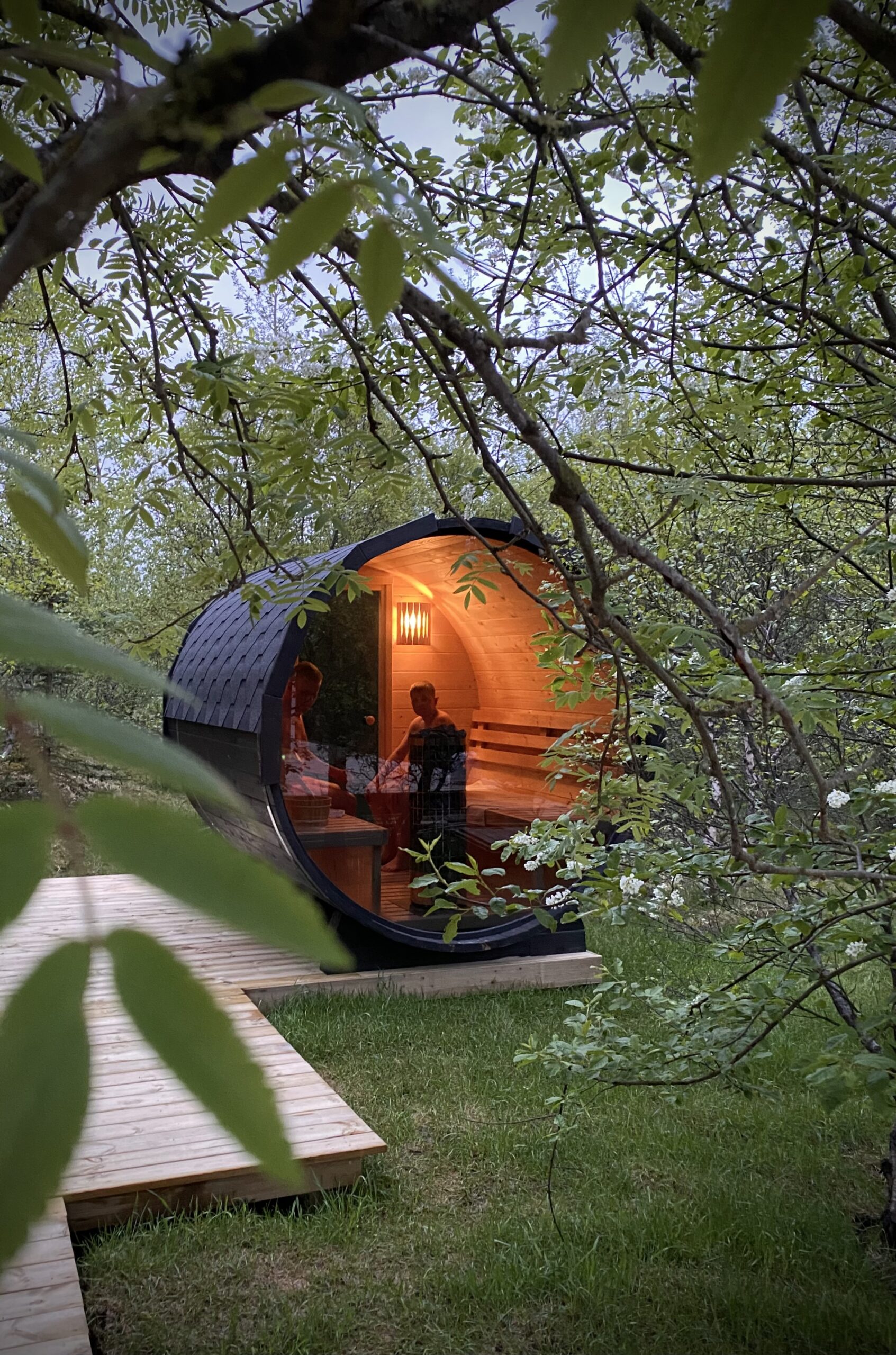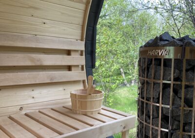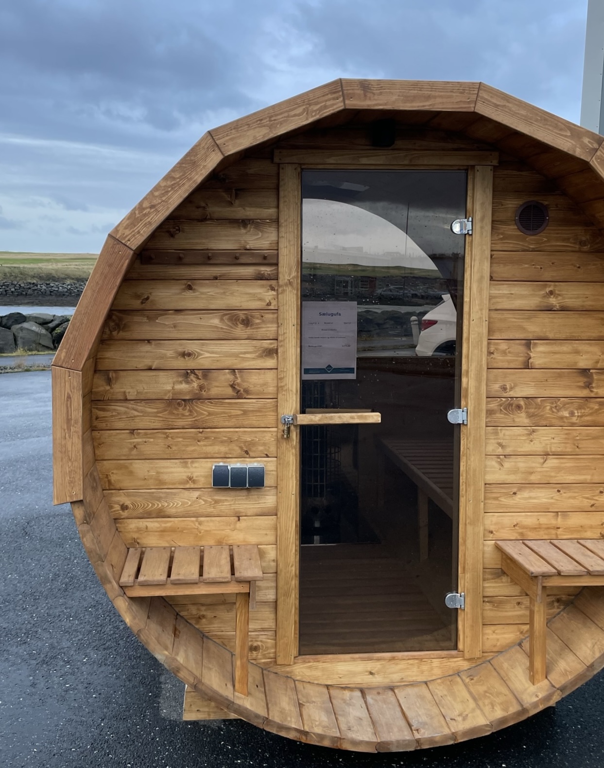Falleg og rúmgóð saunutunna sem auðvelt er að koma fyrir hvar sem er.