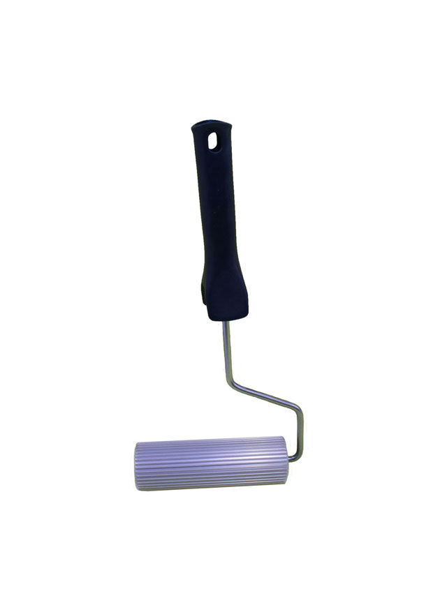 Álrúlla til vinnslu á glertrefjamottum. Motturnar eru bleyttar með resin og þær svo unnar með með ýmist ál- eða tefflonrúllum, þar sem öllu lofti er rúllað út til að tryggja sem mest gæði í plastinu.