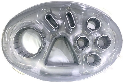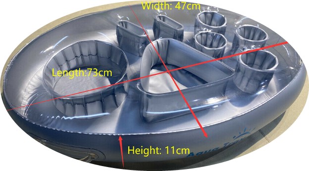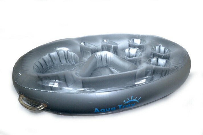 Uppblásinn glasabakki sem flýtur, grár að lit.