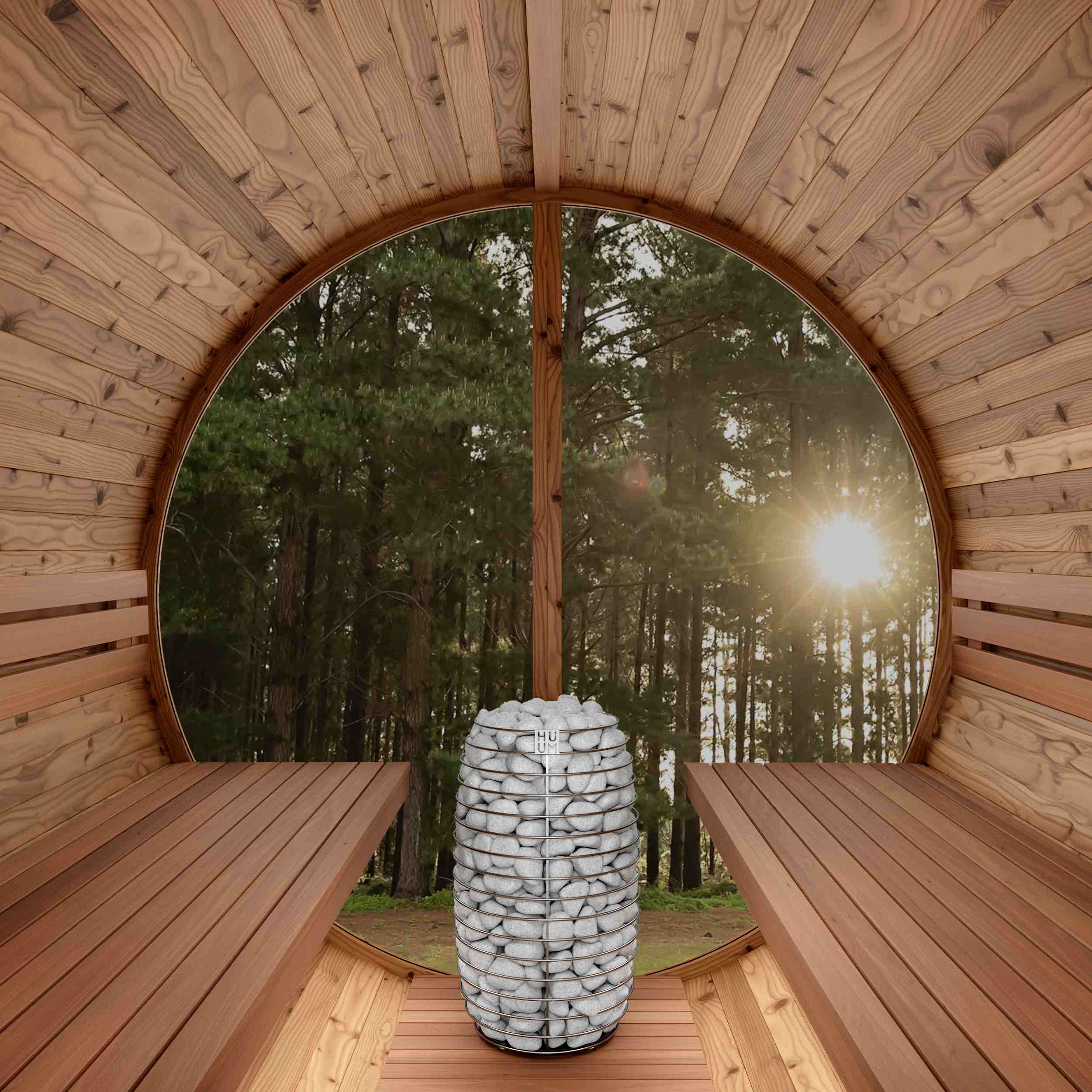 HIVE Mini 11 frá Huum er rafmagnshitari sem er kjörinn fyrir meðalstórar útisaunur á Íslandi. Hann hentar t.d. vel fyrir Lumu og Noru. Það er óvenju mikið af steinum í þessum hitara, eða 150 kg! Þannig næst fram mild og langvarandi gufa þegar vatni er ausið á steinana frá öllum hliðum. Falleg og látlaus hönnun úr endingargóðu ryðfríu stáli.