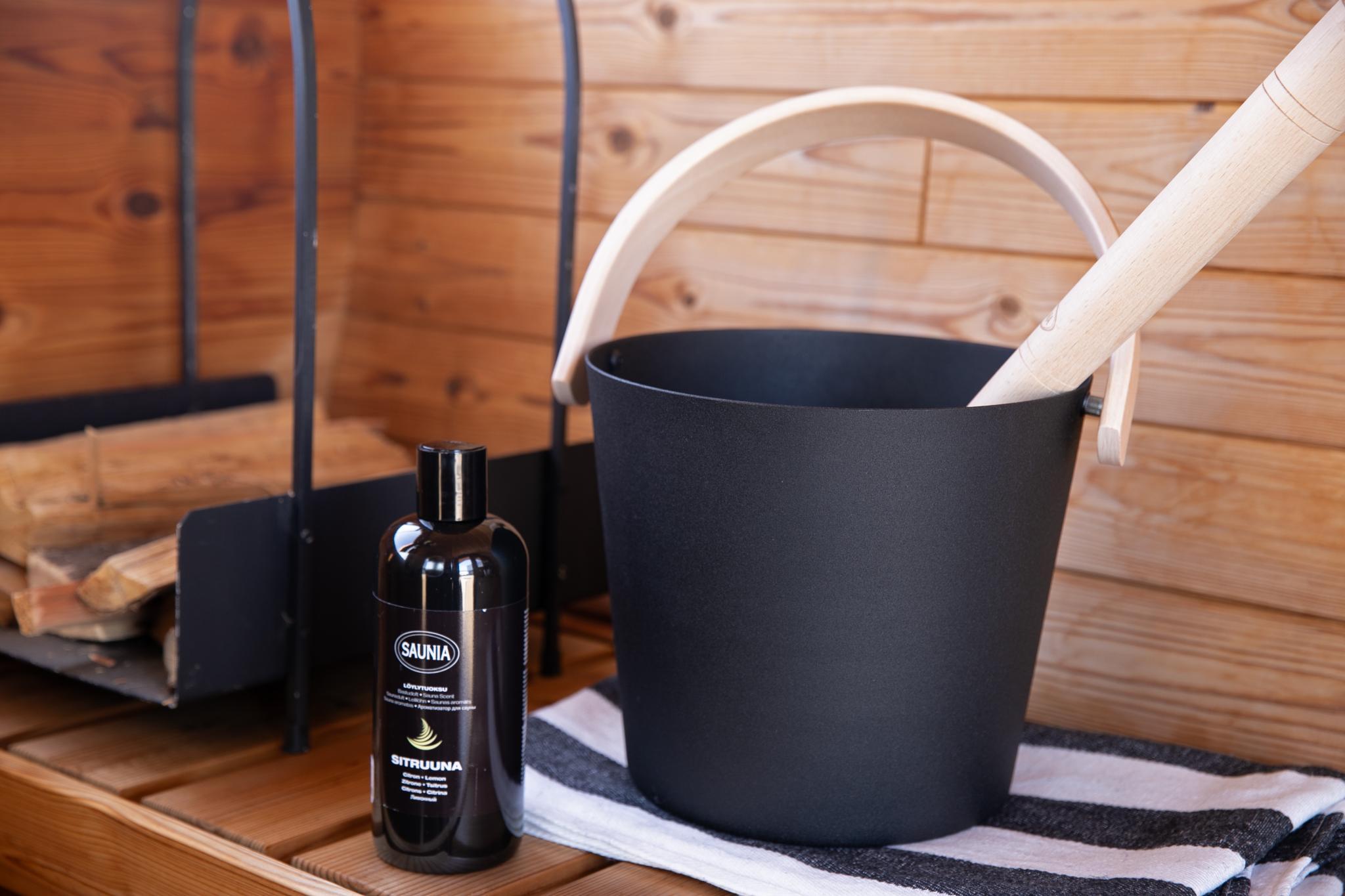 4 lítra koparfata með beykihandfangi. Fallegur munur í saununa.