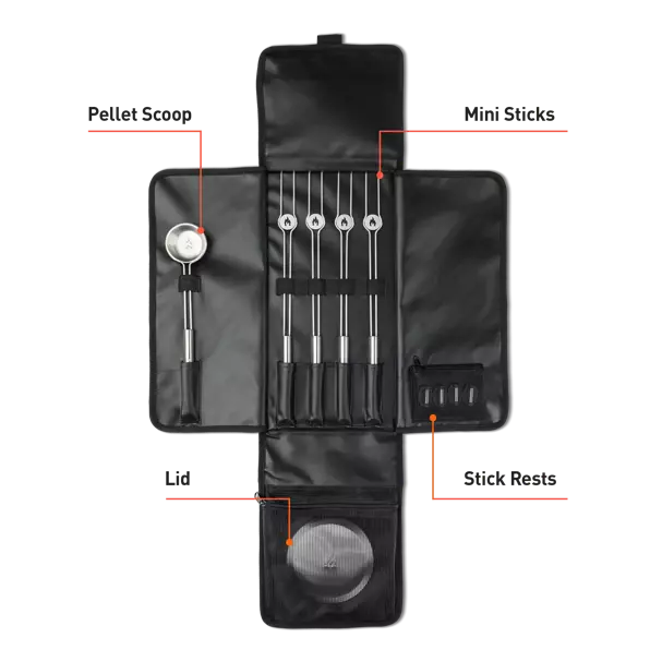• Fjóra standa til að leggja frá sér grillpinna